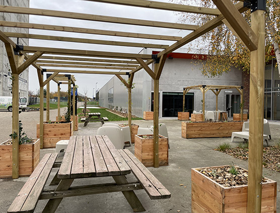 Installer des pergolas pour offrir ombre et fraîcheur aux salariés sur les temps du midi.