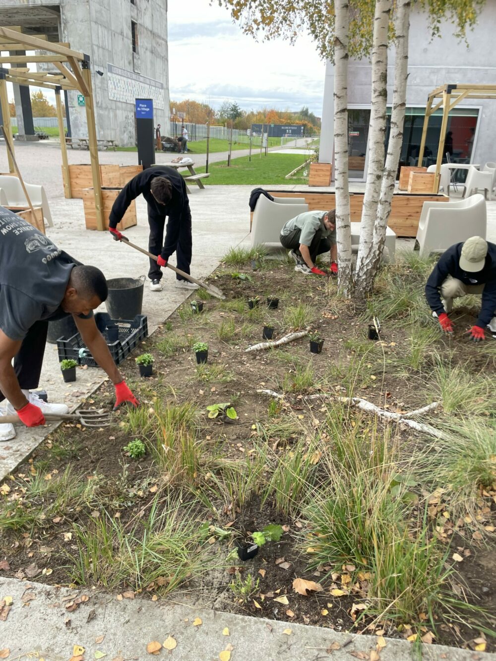 La végétation continuera de grandir, densifiant l’ombre, la fraîcheur et la biodiversité sur tout le site. Les pergolas deviendront de véritables havres pour les pauses et les repas, tandis que les haies et vivaces attireront oiseaux, insectes et papillons.
